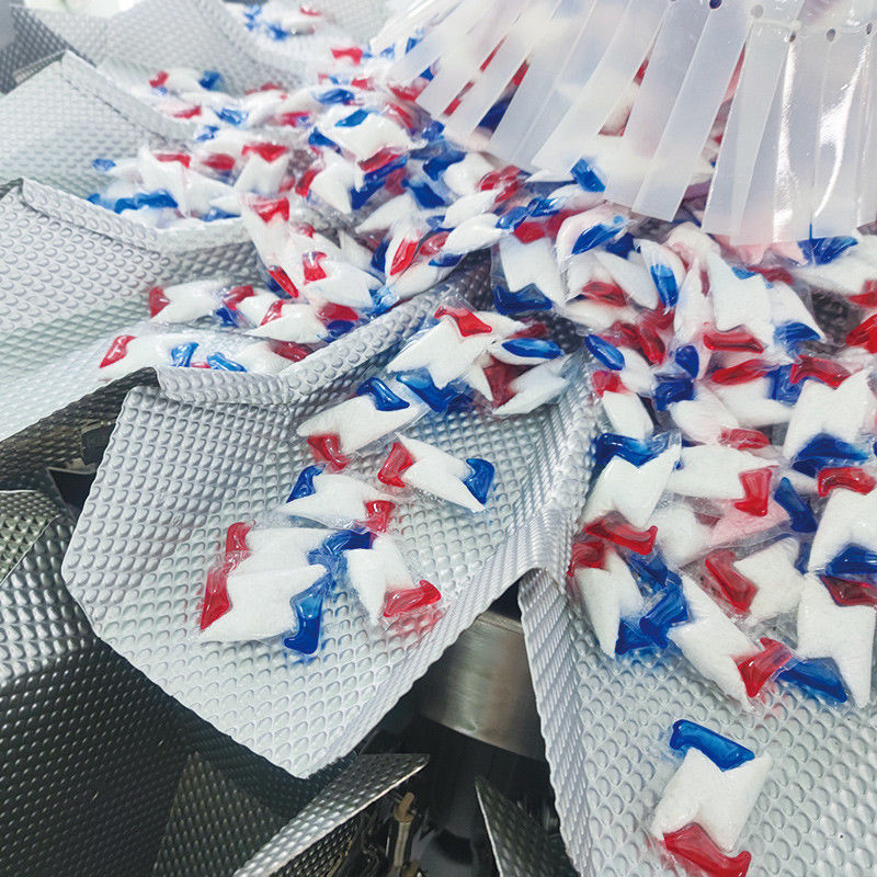 Our advanced multi-head weigher and pre-made bag packaging system provides a complete, high-efficiency production solution for dishwasher detergent block manufacturing, ensuring precise quantitative weighing and efficient packaging.